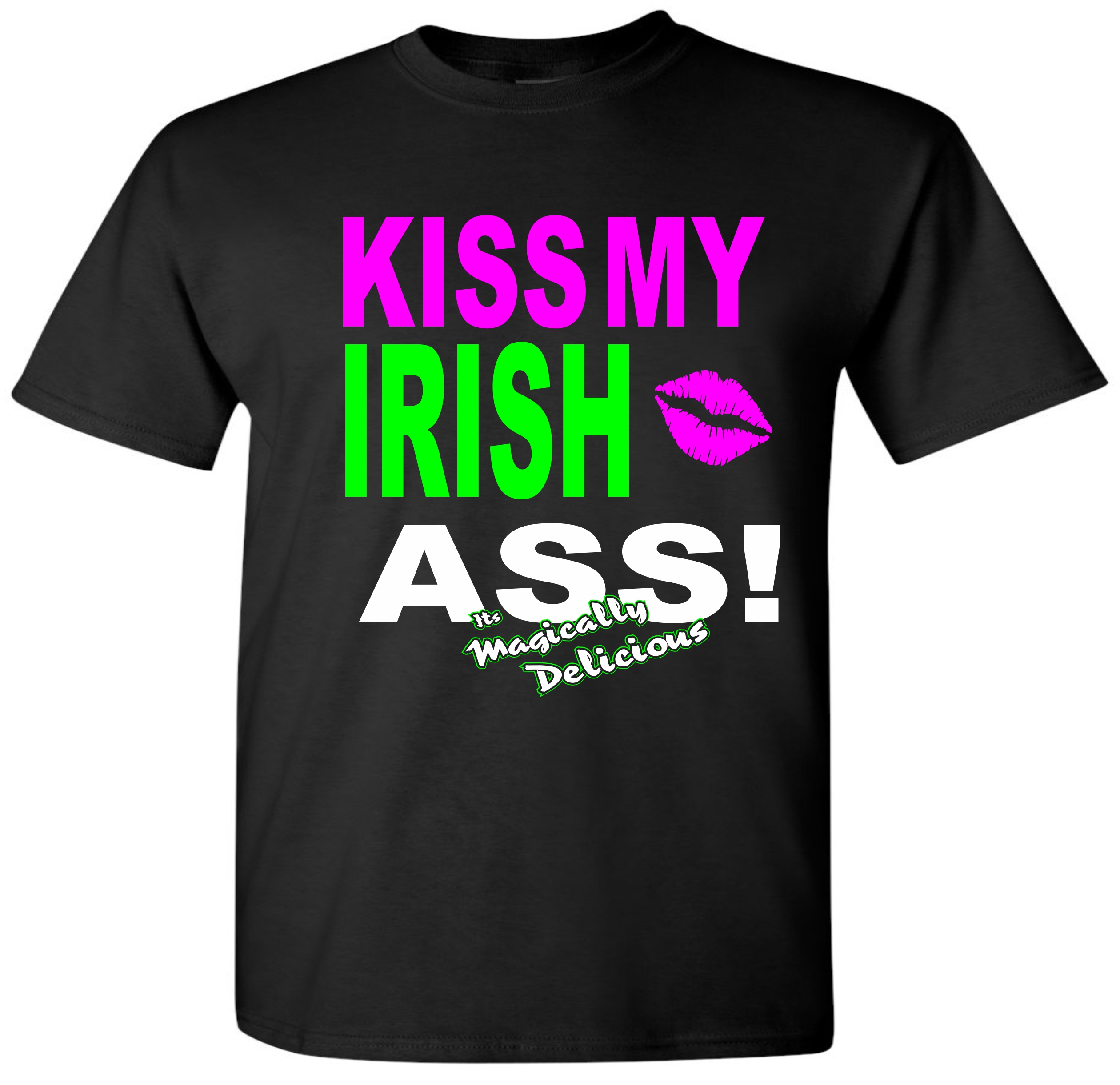 KISS MY IRISH ASS T-Shirt By 5150 Clothing Co. A CASAS Brand, Printed in Multi-Ink colors , On Black 100% Ultra heavy weight cotton T-Shirt