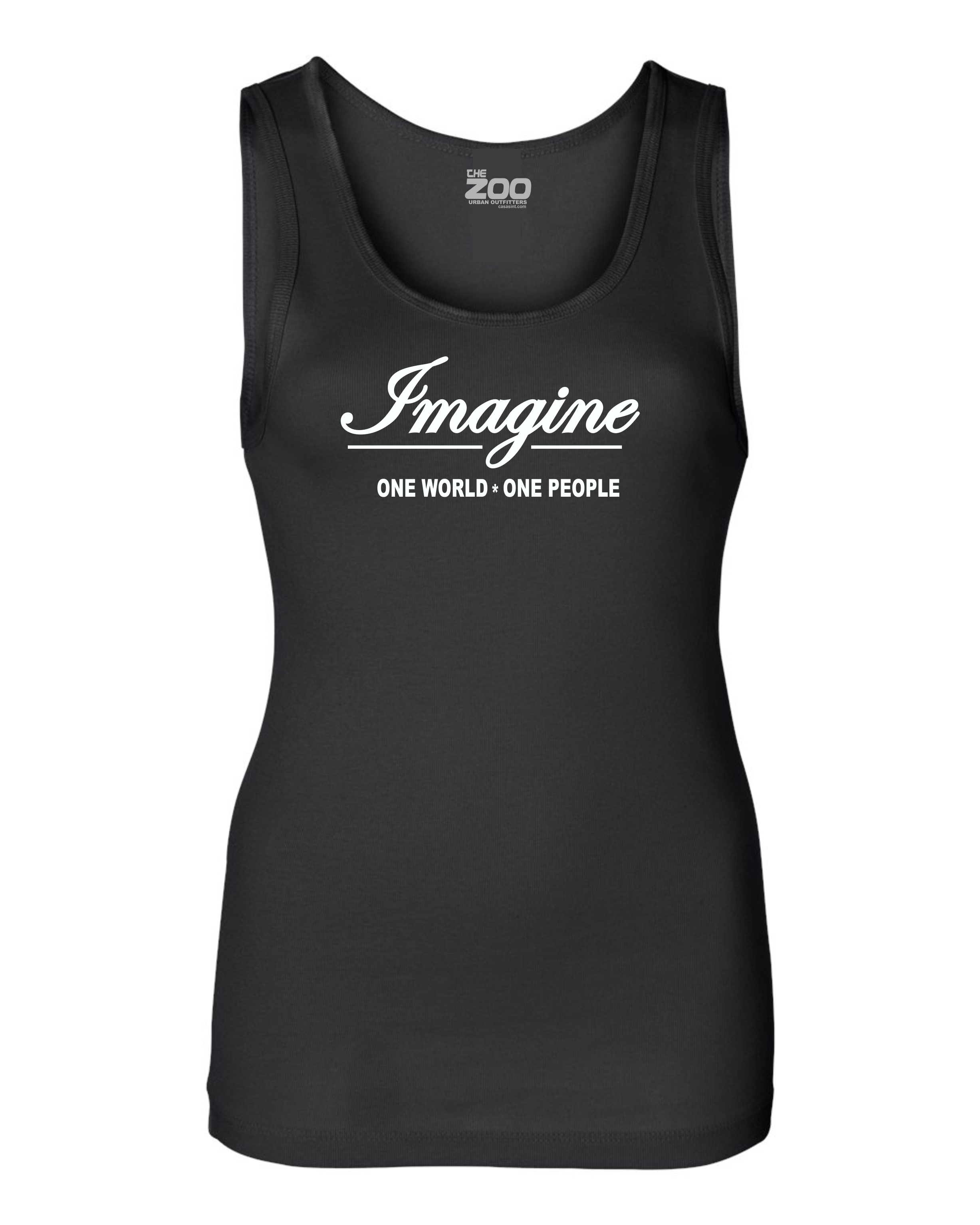 IMAGINE , Ladies tank by THE ZOO Urban Outfitters a CASAS Brand. Ladies Baby Rib Tank Top, 5.8oz., 100% Combed ring spun cotton, Side seamed for a fashionable custom contoured fit. Three eights inch self binding on arm holes and neckline, custom hand screen printed in specially blended inks , Soft hand additive for a soft comfortable feel and Stretch additive to prevent cracking.