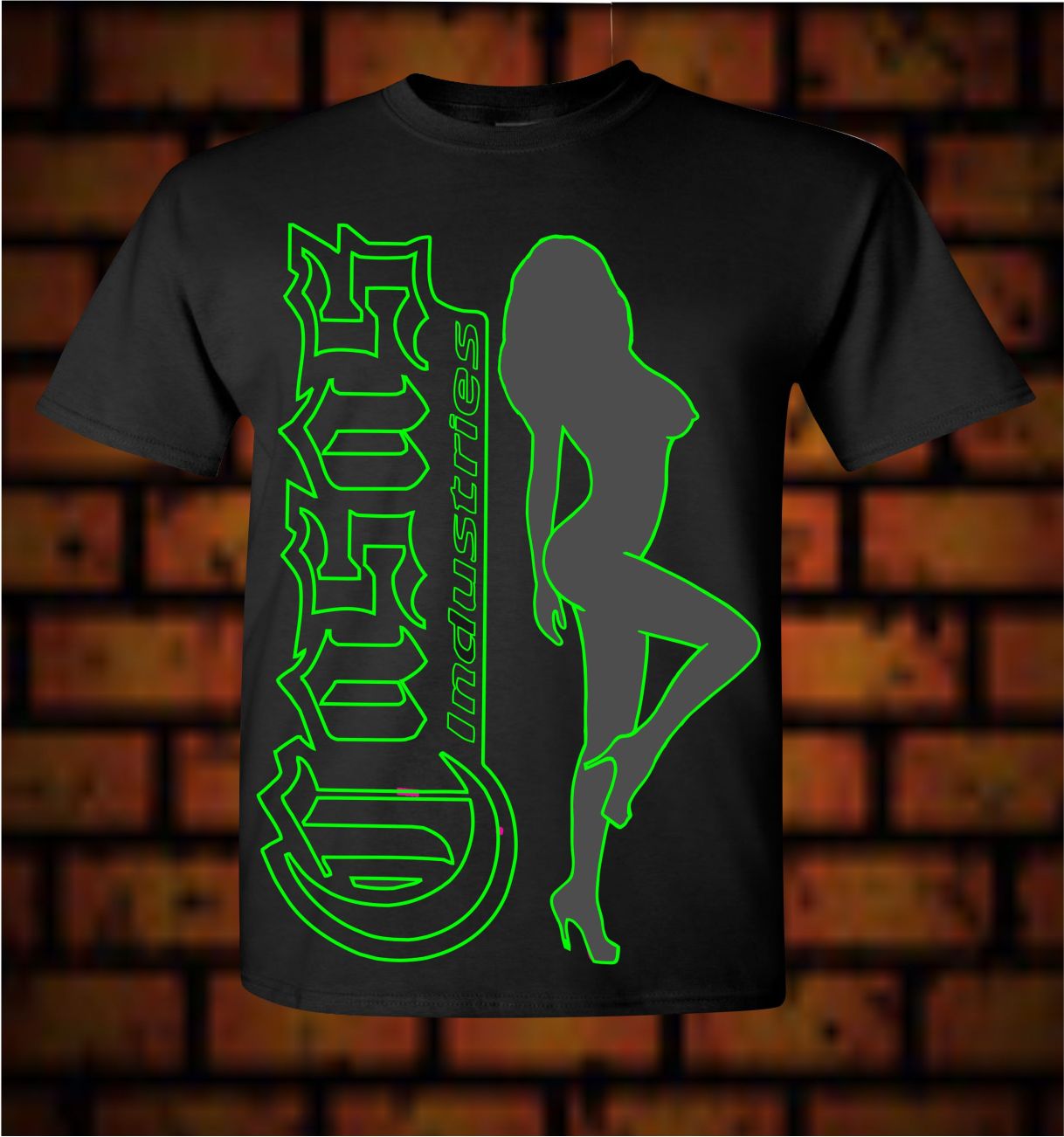 100% Heavyweight Black cotton T-Shirt with Green neon & Gray design.