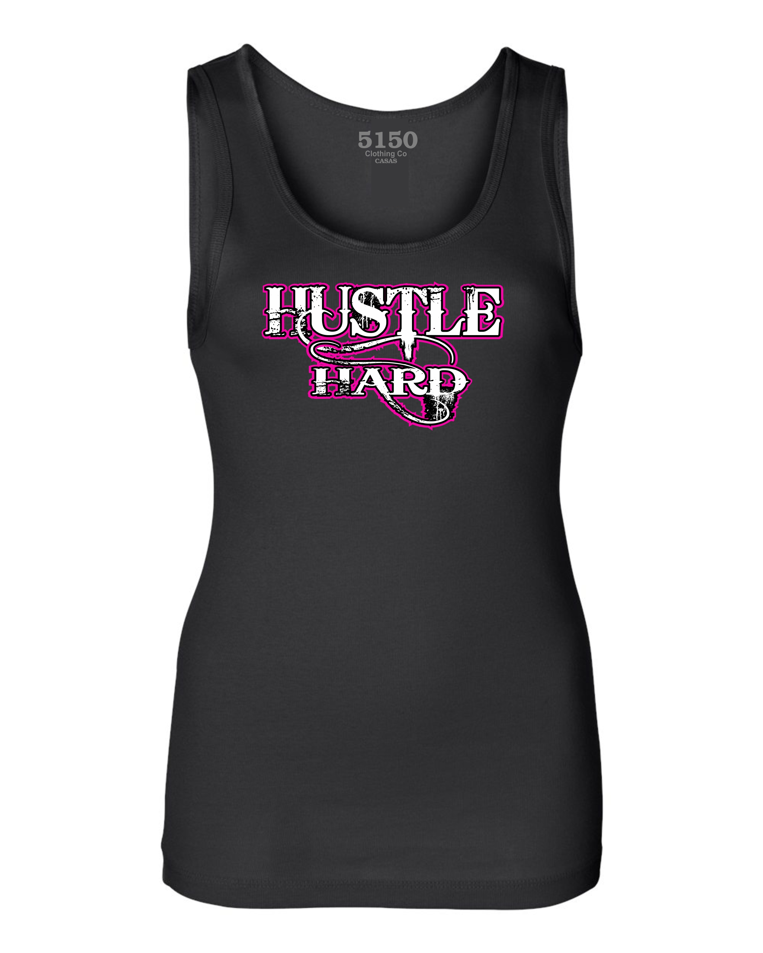 HUSTLE HARD Ladies Tank by 5150 a CASAS Int. Brand , Ladies Baby Rib Tank Top , 5.8 oz., 100% combed ring spun cotton, Side seamed for a fashionable custom contoured fit.