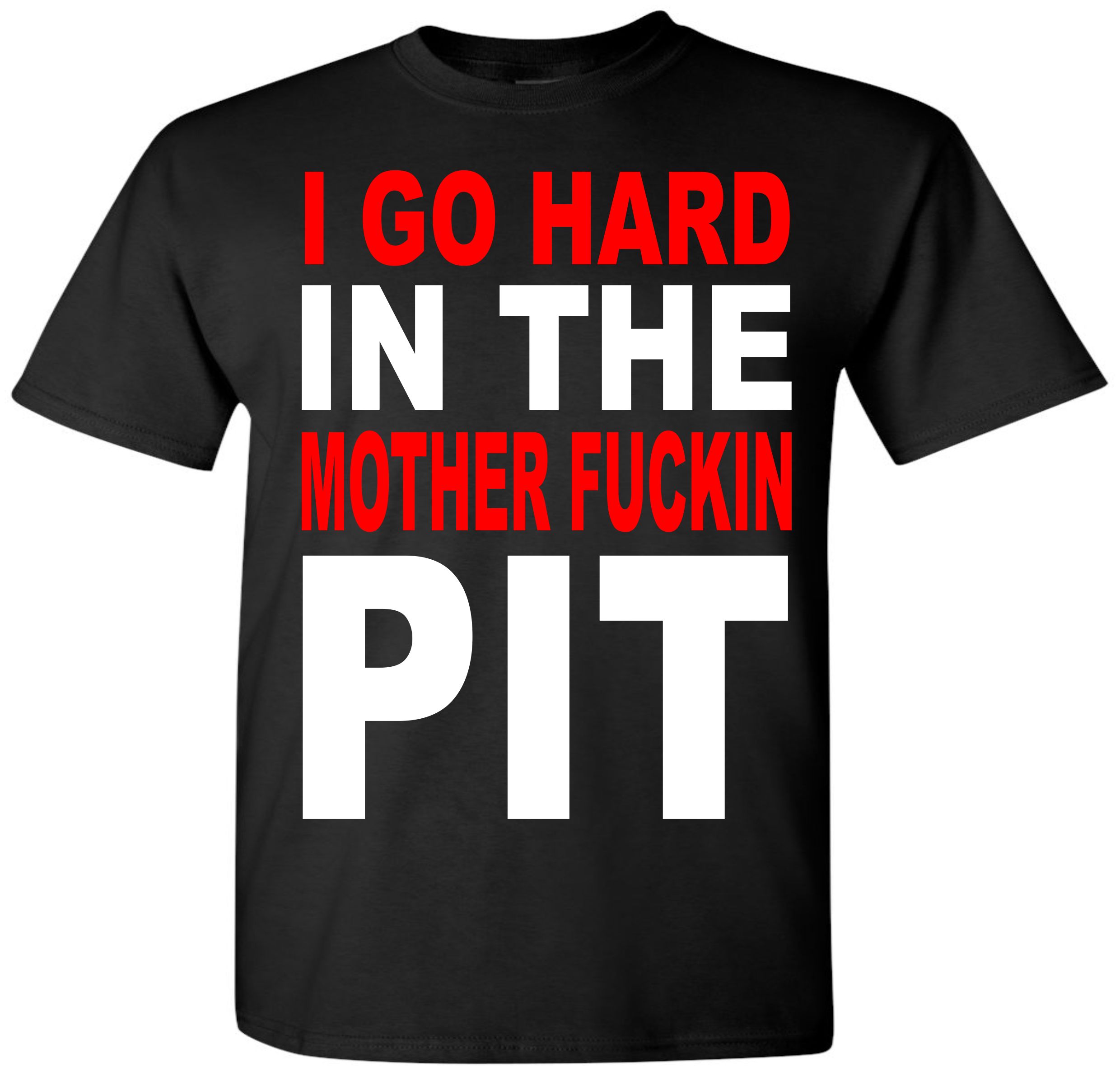 I GO HARD INT THE PIT T-Shirt By 5150 a CASAS Brand, Printed in Multi-Ink colors , On Black 100% Ultra heavy weight cotton T-shirt