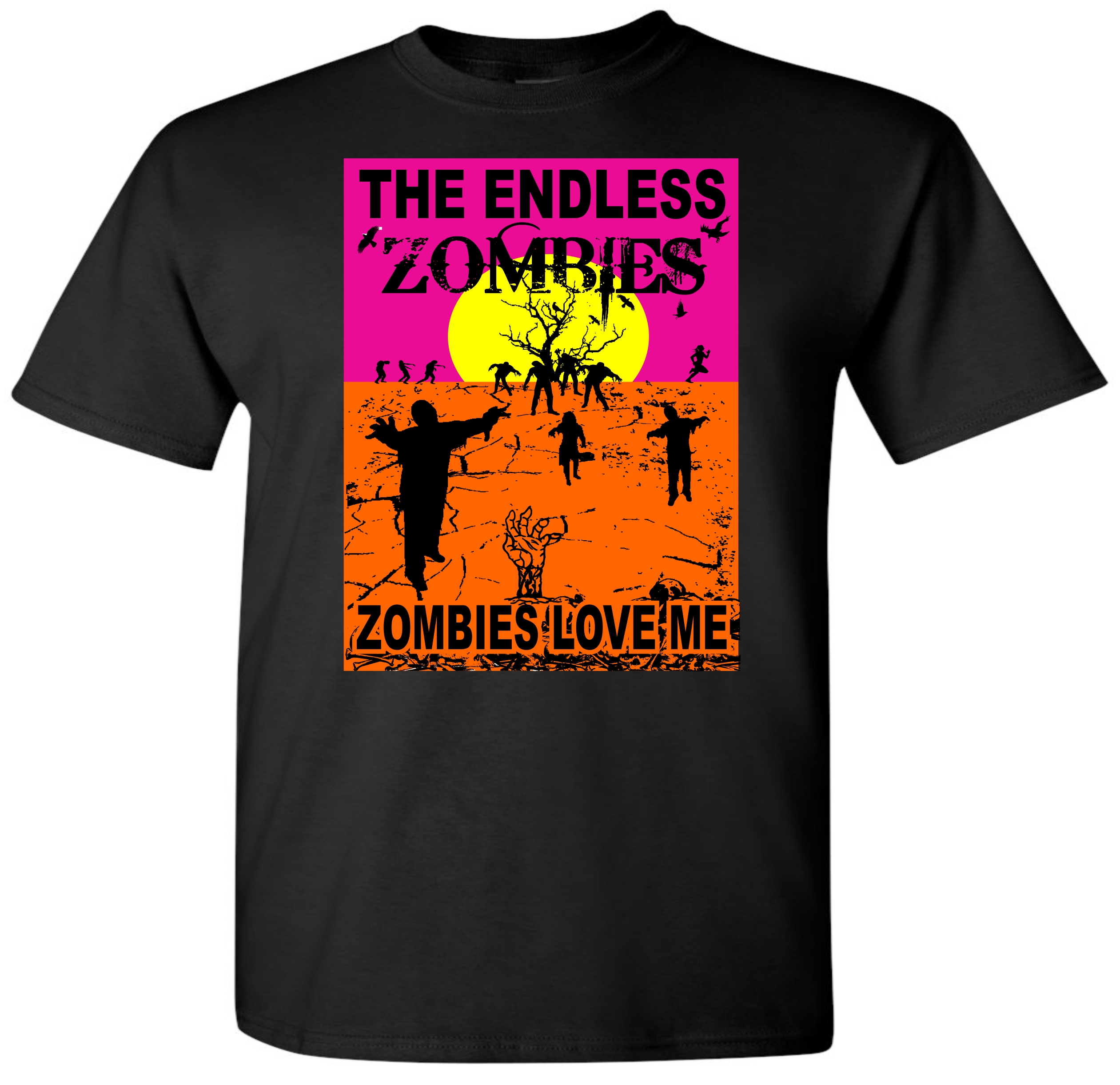 ENDLESS ZOMBIE T-Shirt By 5150 Clothing Co. A CASAS Brand, Printed in Multi-Ink colors , On Black 100% Ultra heavy weight cotton T-Shirt