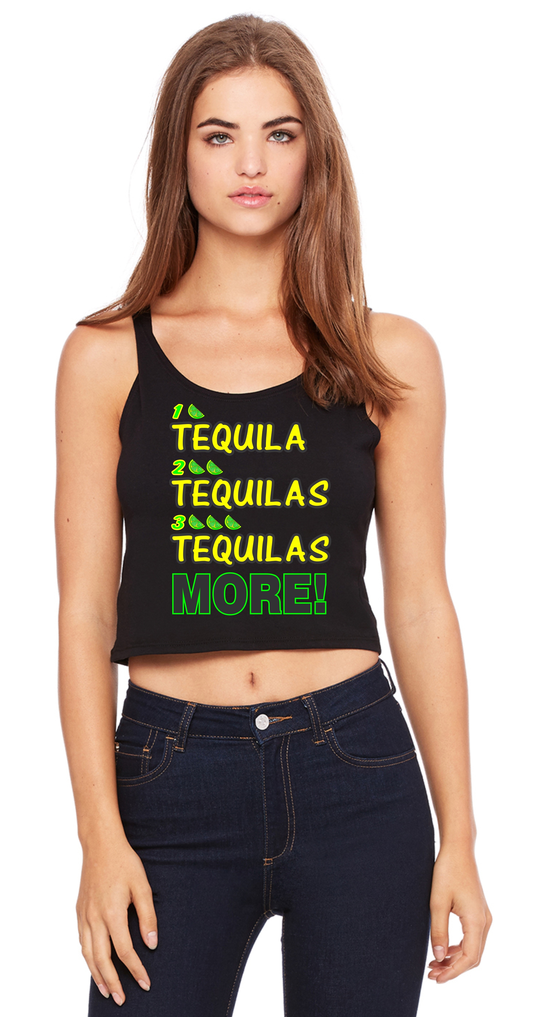 3 TEQUILA Ladies Crop Tank by 5150 Clothing Co. 52% combed and ring spun cotton, 48% polyester, slim fit, side seamed, Screen Printed with specially blended inks, Soft hand additive for a soft comfortable feel
