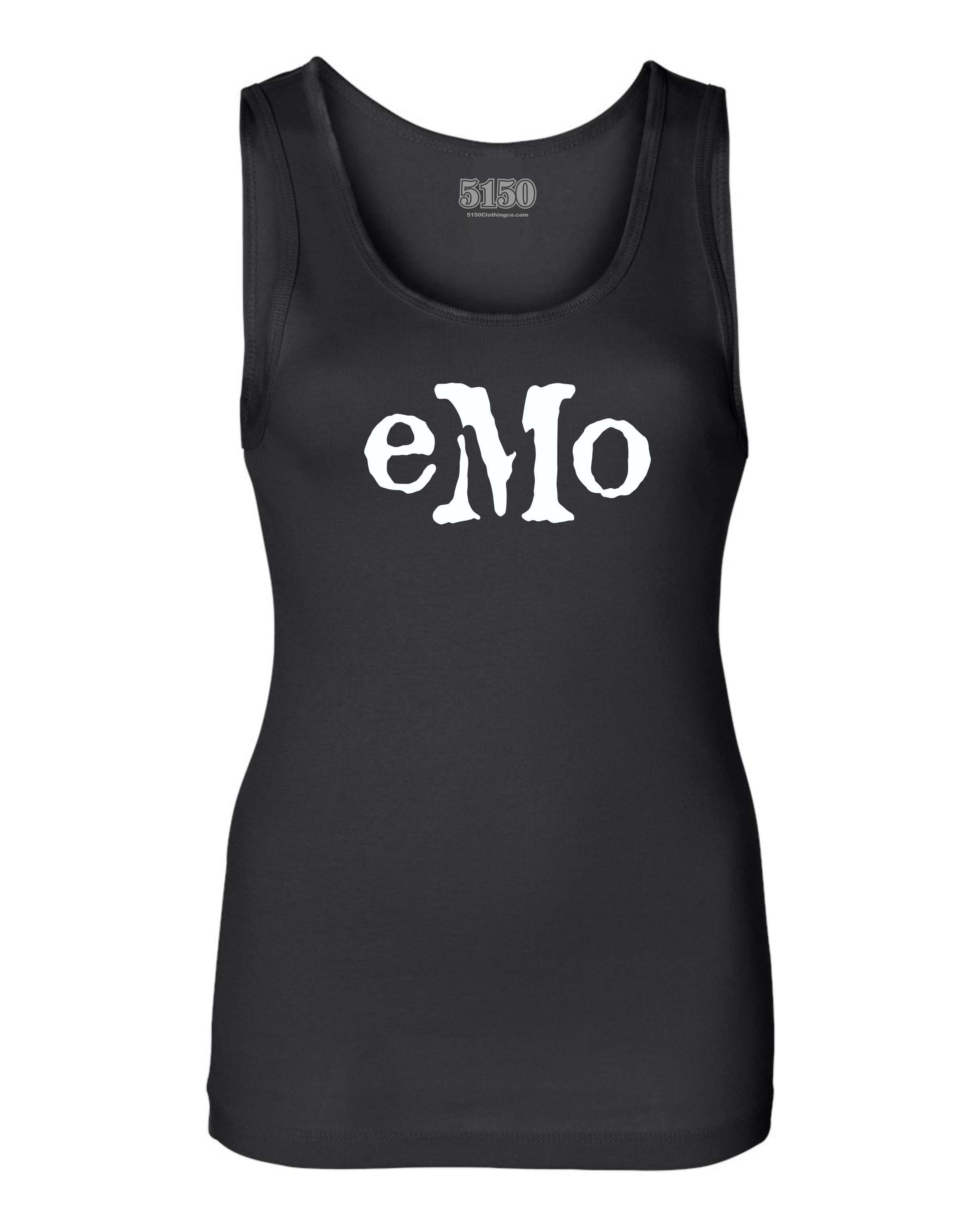 E M O Ladies tank by THE ZOO Urban Outfitters a CASAS Brand. Ladies Baby Rib Tank Top, 5.8oz., 100% Combed ring spun cotton, Side seamed for a fashionable custom contoured fit. Three eights inch self binding on arm holes and neckline, custom hand screen printed in specially blended inks , Soft hand additive for a soft comfortable feel and Stretch additive to prevent cracking.
