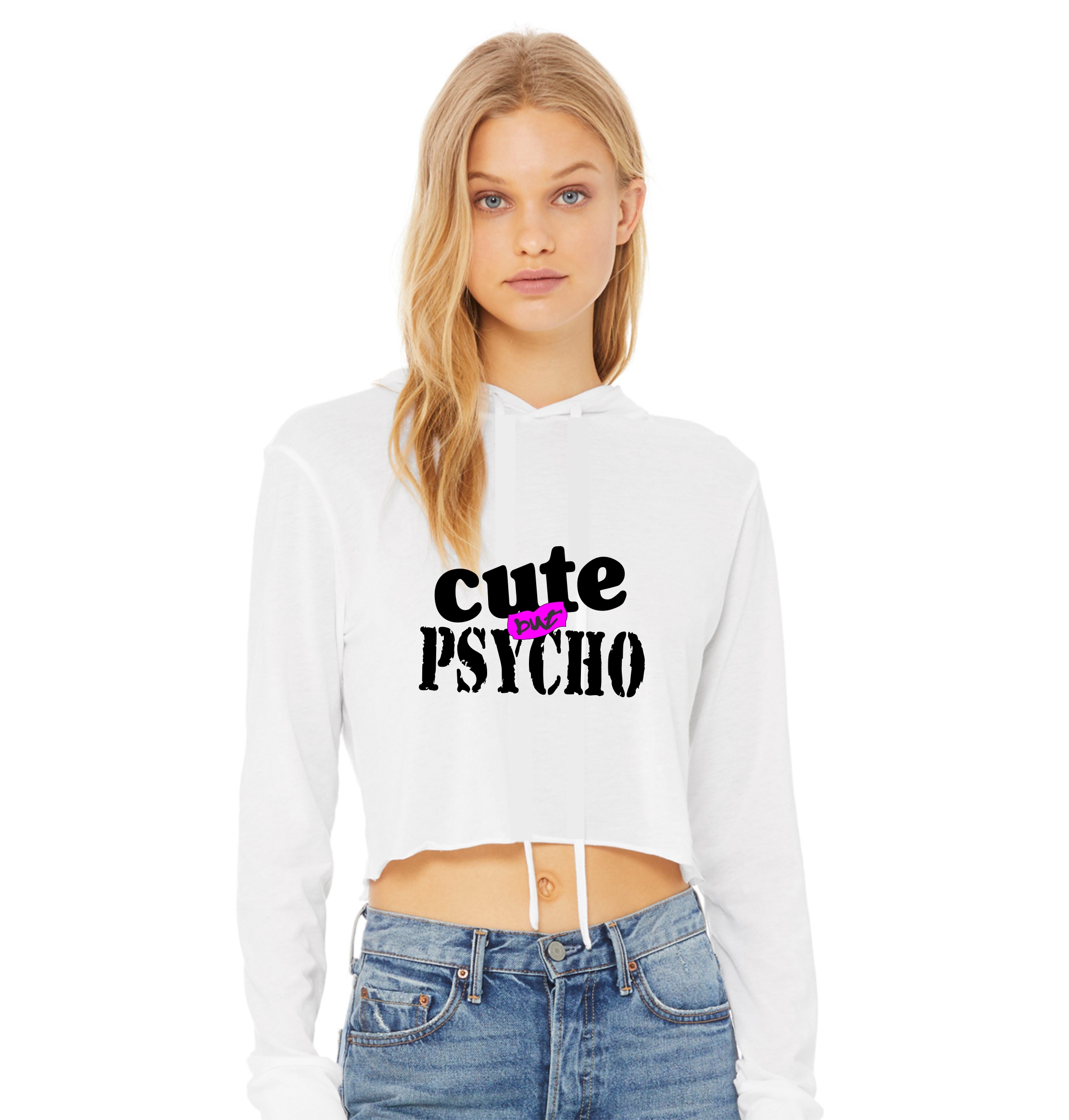 CUTE BUT PSYCHO Ladies Crop Hoodie By CUTE BUT PSYCHO a CASAS Brand, 7 oz., 52% airlume combed and ring-spun cotton, 48% poly fleece,