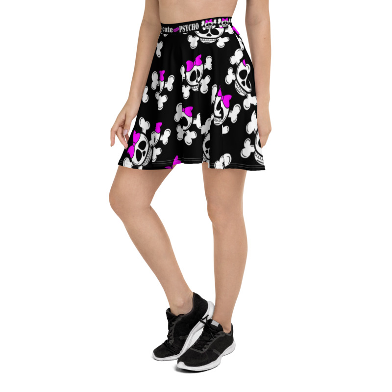 PUNK GIRL Skirt by CUTE BUT PSYCHO. A CASAS Brand, 82% polyester, 18% spandex, Smooth fabric, Mid-thigh length, Elastic waistband, Over lock seams, cover stitch hemline, All our skirts are Printed, cut, and hand-sewn by our expert in-house teams